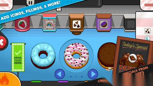 在老爹甜甜圈店的中文版本里,你可以摇身一变成为甜点制作大师。从面团的揉制、造型的塑造,到放入油锅炸制、最后进行装饰,每一个金黄诱人的甜甜圈都由你亲手完成。这里有12个主题节日,会带来专属的限定食材。你可以用果酱进行淋面,用糖霜绘制精美图案,以此来满足那些口味挑剔的食客。还能解锁各种贴纸,用来装扮顾客的造型。通过触屏的特制操作,你能尽情体验经营店铺的乐趣,再搭配上温馨的剧情,一步步打造出属于你自己的梦幻甜品王国。