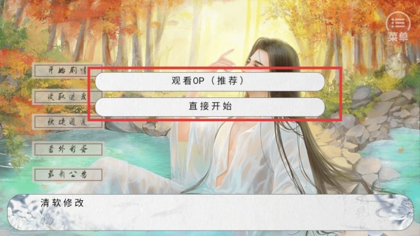 点击【观看OP】能够查看前情提要,点击【直接开始】就会跳过相关内容。