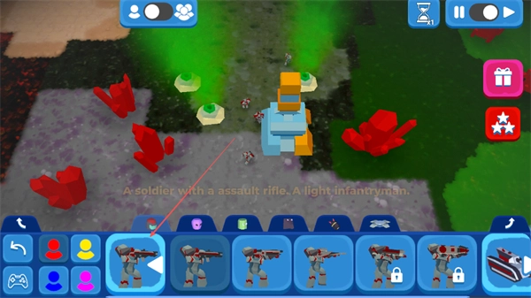 召唤配备突击步枪的A-soldier等步兵单位,组建战斗部队。