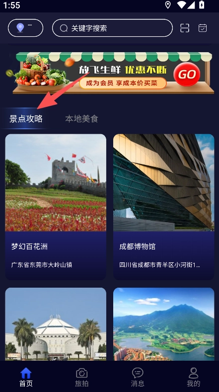 分类清晰明确,景点攻略与本地美食板块划分清晰,用户可快速找到所需内容,操作路径直观,提升使用体验。