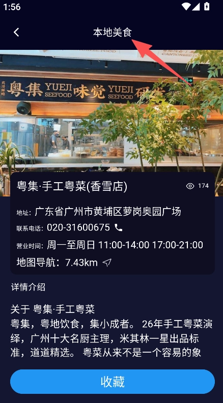 你可以点击本地美食板块,从中挑选心仪的餐厅,进而查看该餐厅的地址、联系电话、营业时间以及详细的介绍信息。