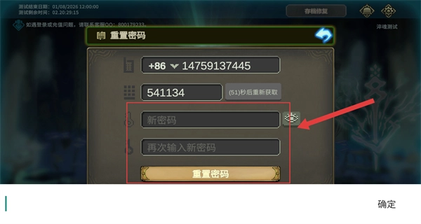 输入验证码后,先后填写两次新密码,点击重置密码按钮,就能完成密码重置操作。