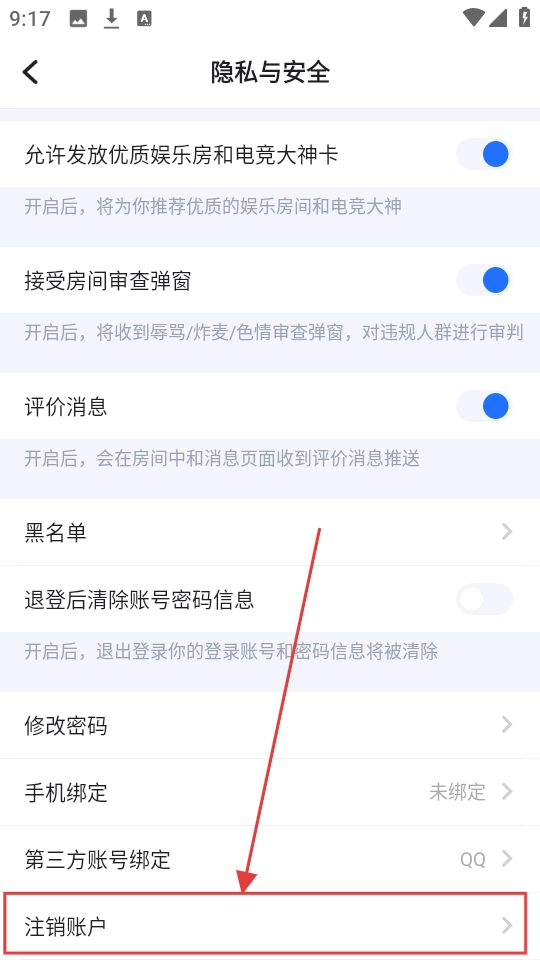在隐私与安全页面找到【注销账户】按钮并点击,即可进入账号注销流程,若您有注销账号的需求,就从这一步开始操作吧。
