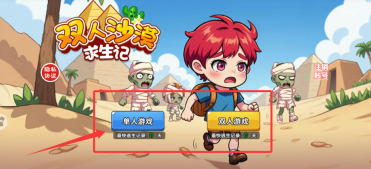 1、游戏初始可选择单人历练或双人协作模式,体验不同的沙漠生存挑战玩法。