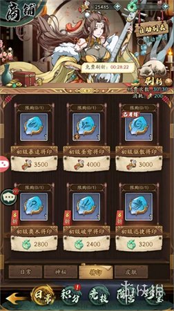 使用玉碧购买:战书、银箭矢、5折突破丹(按需)、5折风华录。