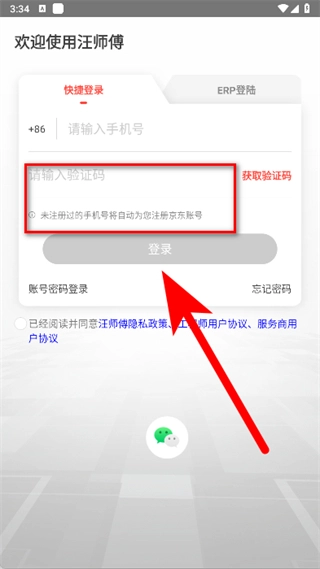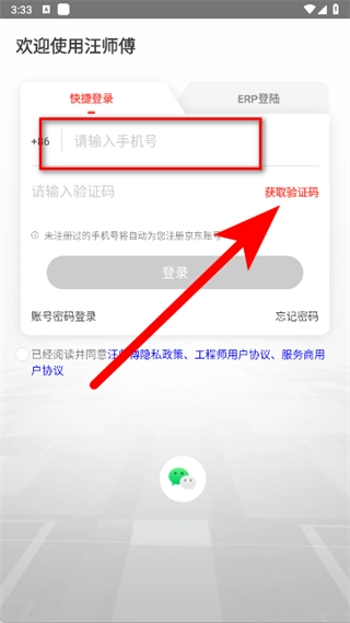 在快速登录页面,输入手机号后,点击获取验证码。