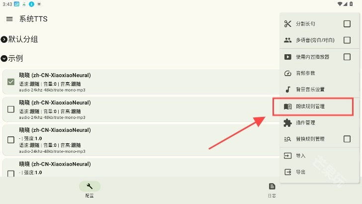 3、最后就可自定义管理或是加入朗读规则了