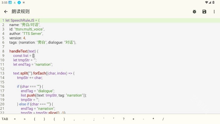 5、最后进入阅读界面,将朗读引擎设置为TTS Server,随后启动听书功能,旁白与对话内容便会分别由预先设定的两个不同音色进行朗读。语速、音量和音高都能依据个人偏好,在TTS Server中逐步调整,呈现出的效果十分出色。