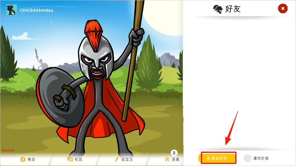 1、进入火柴人战争遗产3的主界面后,点击右上角的【好友】图标。