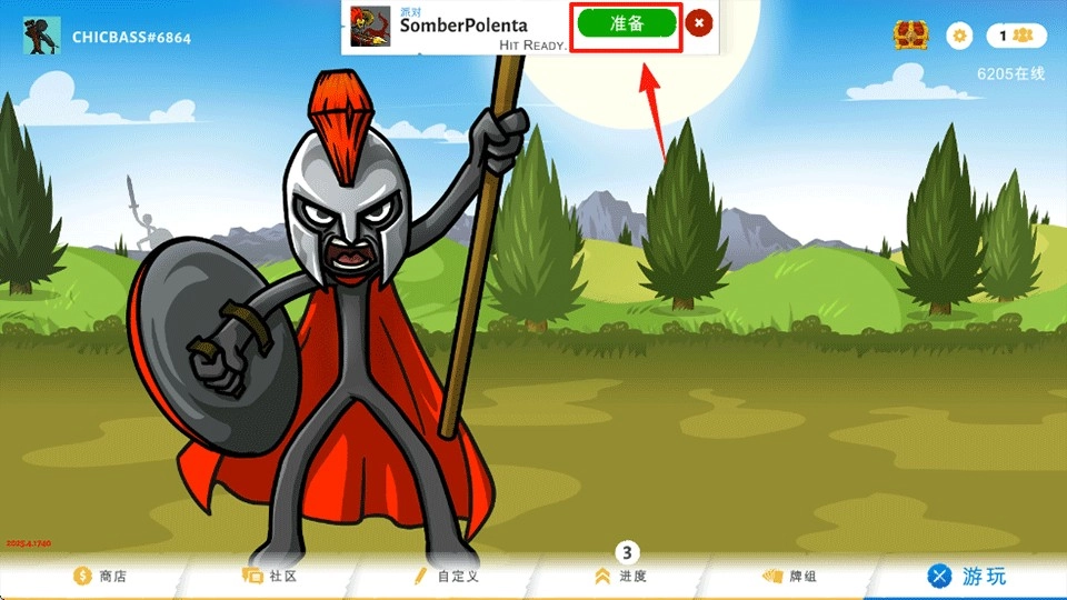 7、好友同意后,双方都要点击【准备】按钮,等准备状态都完成了,才能去选择游玩模式。