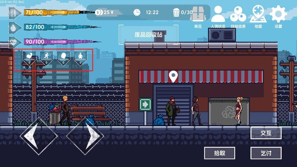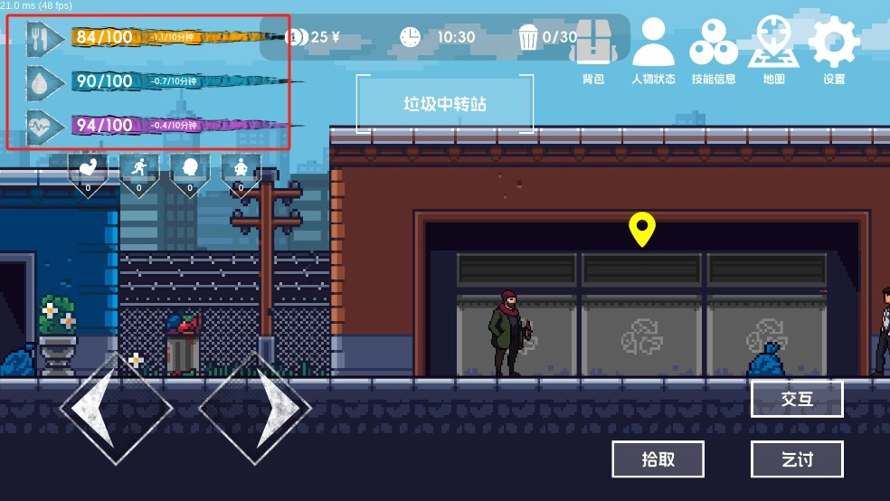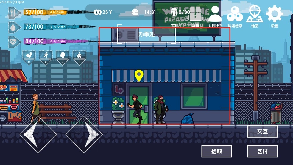 3、采用像素屏幕设计,让你体验到独一无二的内容。玩家在游戏中扮演一名身无分文的乞丐,并在此经历人生。