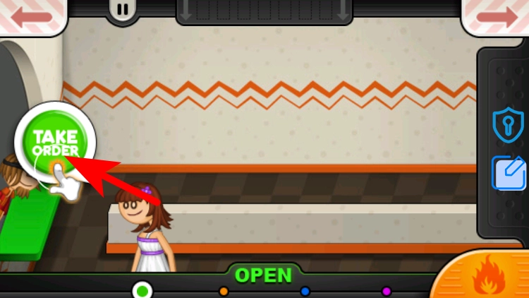 在店铺界面中,找到并点击“TAKEORDER”按钮,以此接收顾客提出的订单需求。