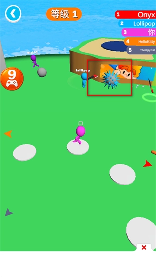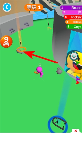 控制角色移动到道具所在的地方,捡起场景里的物品,增强对局时的优势。