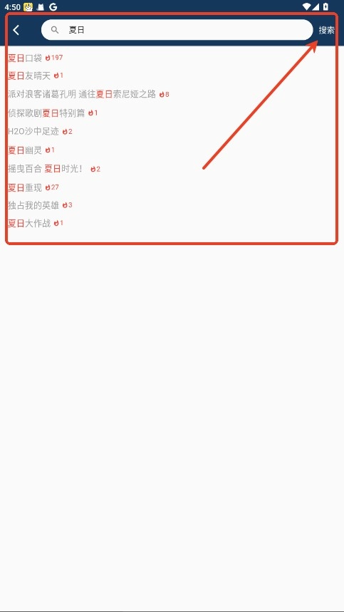 搜索框内输入动漫名关键词,点击搜索。