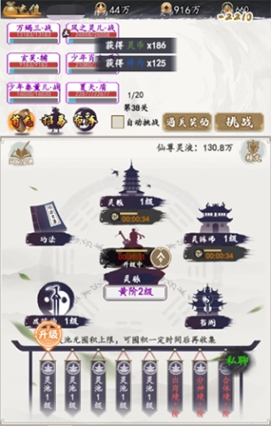 灵池的等级越高,能获取的经验值就越多,前期借助灵池能够更快地把灵脉提升到理想状态。另外,通过主线剧情的闯关也能得到大量的灵脉经验。