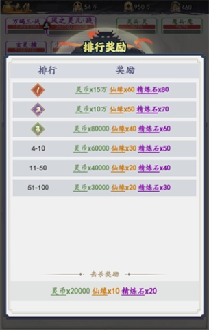 这个BOSS的主要输出手段是单体攻击,会对前排造成高额伤害,所以提升前排的防御能力是应对的关键。顺利将其击败后,能够获取大量灵币、仙缘等珍贵道具。