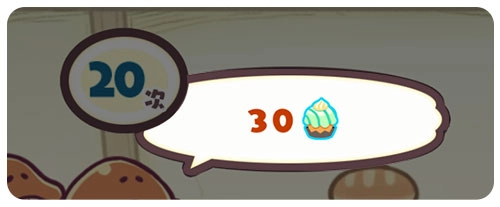 对话框左上方的数字代表顾客“菇菇”枯萎前剩余的可操作次数。每次消除方块,这个数字就会减1。当数字变为0时,顾客就会变成“枯哭菇菇”。“枯哭菇菇”似乎几乎不会提供NP……请务必留意,尽量避免让顾客枯萎哦!