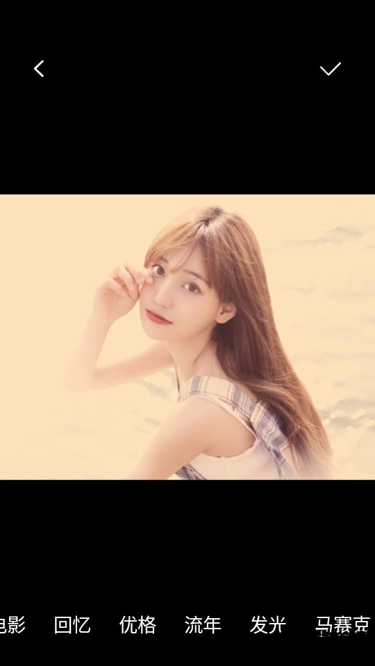 挑选好你心仪的图片后,给它加上滤镜效果,接着点击右上角的对勾按钮,这样就能完成保存啦。