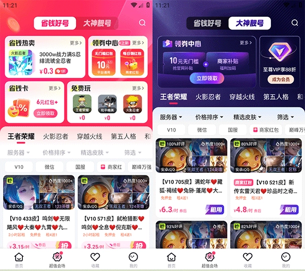 最后,在超值会场页面还能领取优惠券,拼手速就能享受极品折扣和大神靓号。