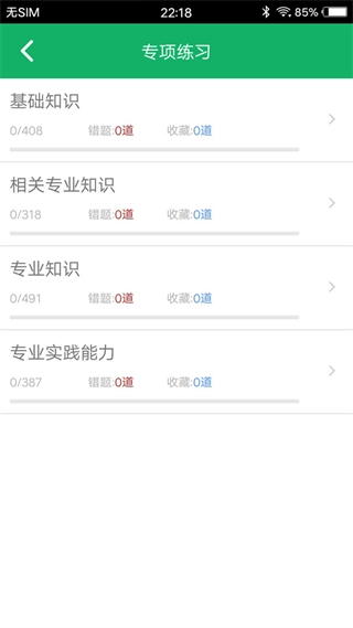 打开临床检验技师题库后,点击专项练习选项,即可进入专项练习的分类页面。