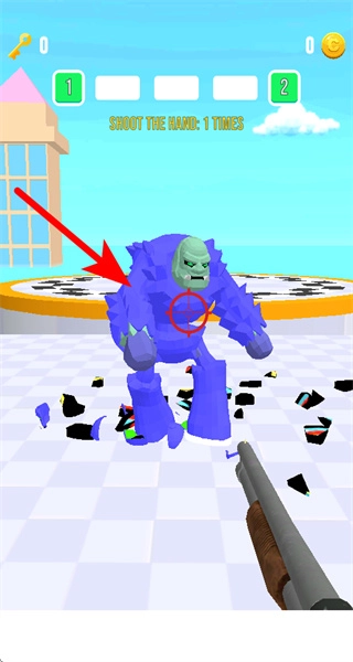 把攻击目标对准怪物身上标有红色靶心的部位进行射击,一旦成功命中,就能达成击杀怪物的任务指标,进而推动关卡向前进展。