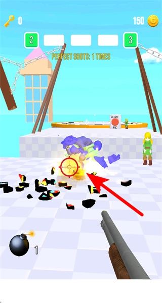 完成当前目标后,接着对准新的靶心区域进行射击,积累完美射击的次数,以此获得更多的金币奖励。
