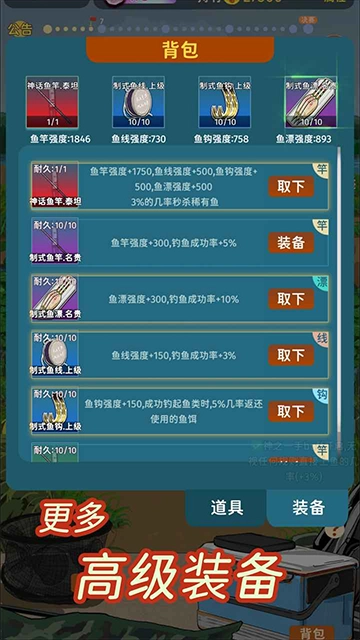 装备升级机制:配备丰富多样的渔具与装备,支持对其进行升级强化操作,完成升级后能够有效提升钓鱼的效率以及针对鱼类的“战斗力”。