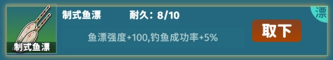 鱼漂:可以降低鱼类进入狂暴状态的概率,并且在反制技能成功触发时,能带来更高的伤害加成,为钓鱼活动提供有效的辅助作用。