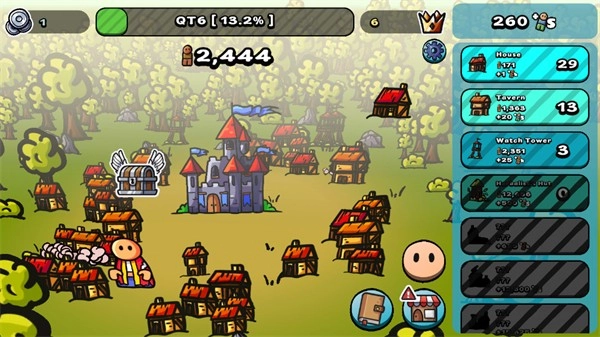 《点击帝国》是一款休闲策略经营游戏,玩家将以中世纪统治者的身份开启冒险。游戏从一座破败的古堡开始,玩家通过点击屏幕来积累金币和资源,建造各种功能性设施,逐步扩大领地范围,让国家日益强盛。游戏的核心操作是点击,无需复杂的操作步骤,策略性主要体现在资源的合理分配和设施建造的规划上。整体节奏轻松愉快,玩家可以充分体验从弱小逐步发展到强大的经营成就感。