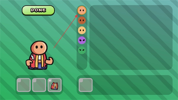在这个界面里,你可以挑选右侧任意一款角色样式,选好之后点击DONE按钮,就能完成角色形象的设置了,另外还能查看界面下方和服饰有关的选项。