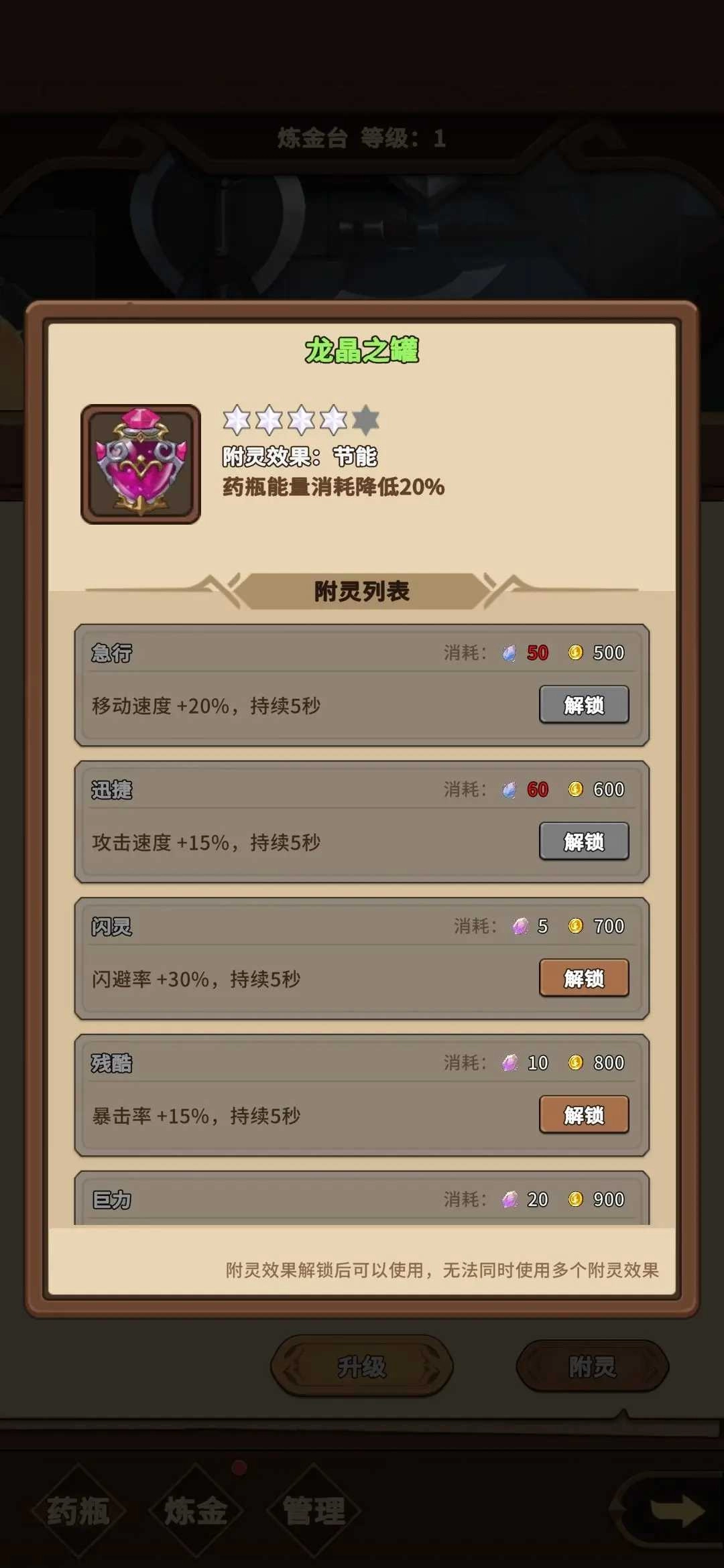 2、血瓶可以通关解锁附灵效果,从而解锁血瓶的各种效果。下面是各种附灵效果以及解锁所需材料的图片。