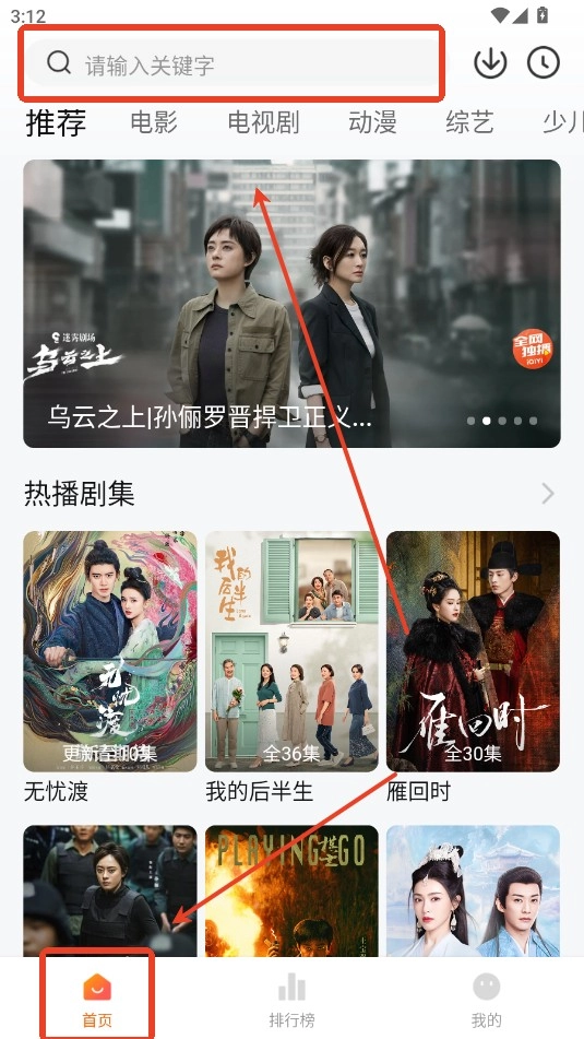 输入要看的电视剧关键词。点击搜索。