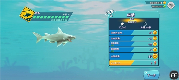 3、丰富的升级内容,能够借助升级强化来提升鲨鱼的狩猎能力与生存能力;