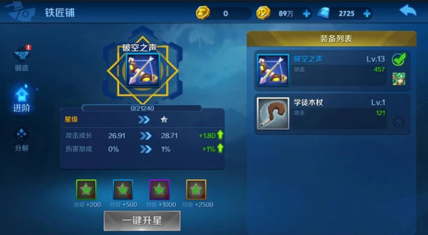 11、装备升星消耗升星石,属性梯度提升。白装不可升星,其余品质可以。