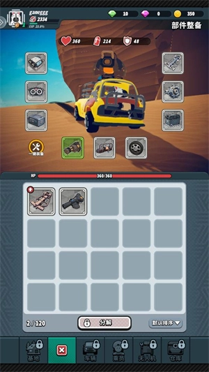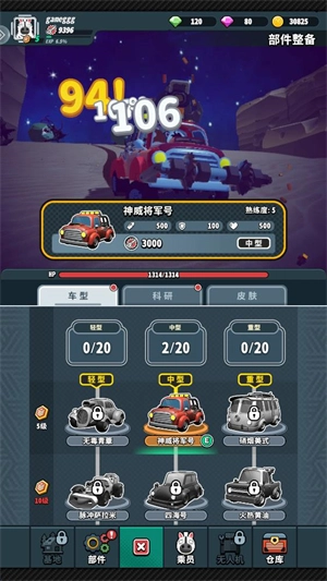 在主界面点击下方的部件,既能更换车辆部件,也能强化你的部件。