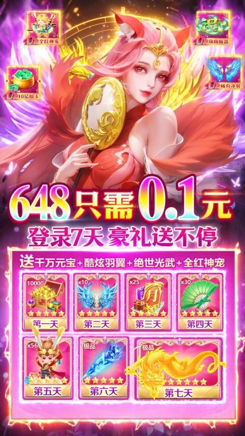玩家只要登录游戏就能领取丰厚奖励,还有超高倍率加持,更有限定武器、翅膀与坐骑等好礼。
