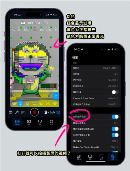 最后,要记得调整伪色与编解码的相关设置。伪色有助于更精准地把控画面的曝光效果,编解码设置则会影响视频的分辨率参数以及色彩空间表现。合理调整这些设置,能够有效提升视频的整体质量。