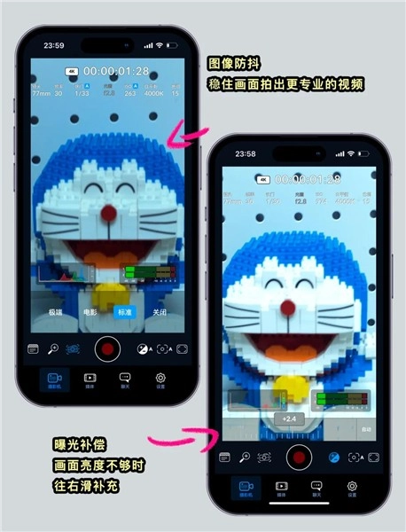 想要拍摄出更具专业感的视频,开启图像防抖功能能有效稳定画面。另外,要是画面亮度不足,还可以借助曝光补偿来调节亮度。这些实用功能都能让你的视频呈现出更专业的效果。