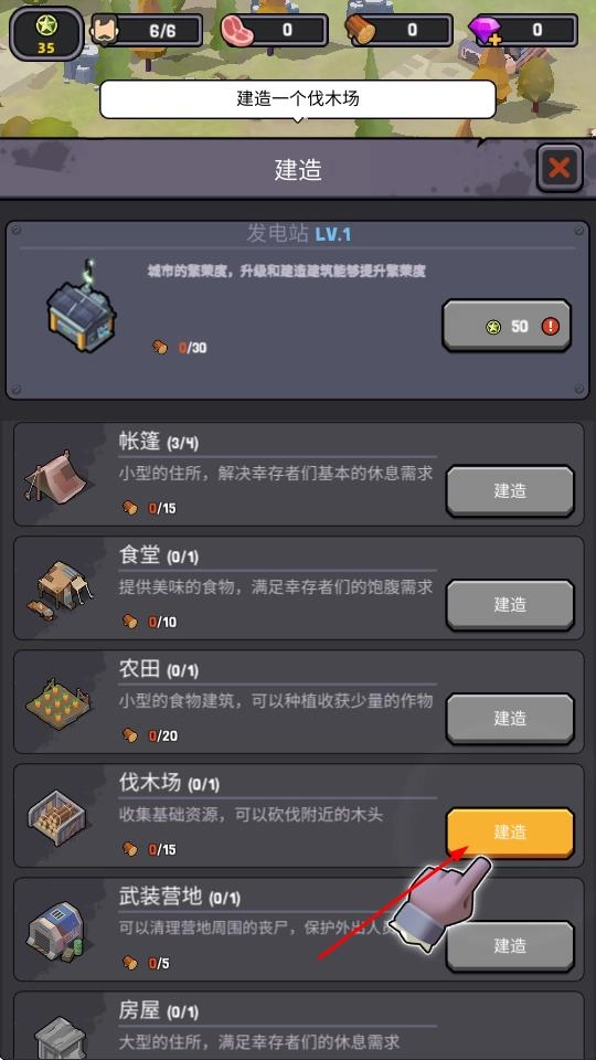 进入建造界面后,你可以选择建造伐木场之类的建筑,以此满足资源收集等方面的需求,只要点击对应的建造按钮就能启动建造流程。