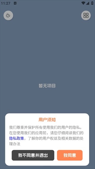 点击页面左侧的图标,就能查看隐私、用户协议、反馈等内容。