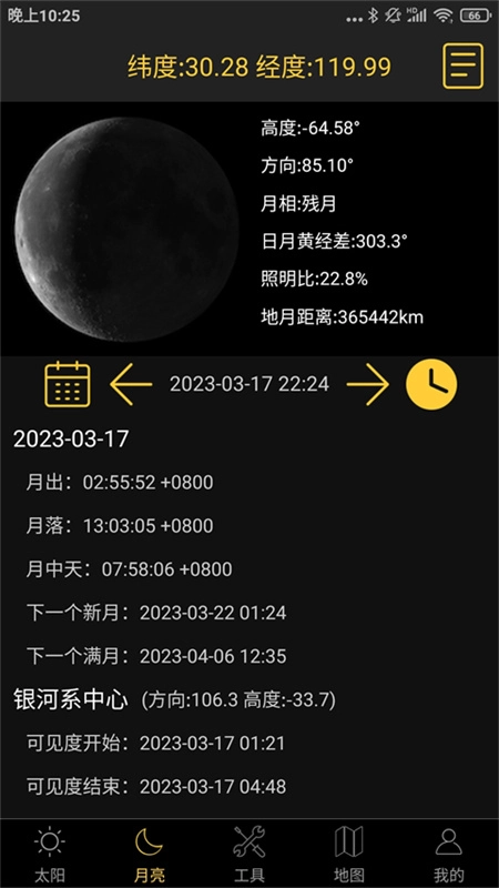 2、能够实时计算太阳与月亮在任意时刻的状态,只需打开应用即可清晰知晓,操作简单便捷。
