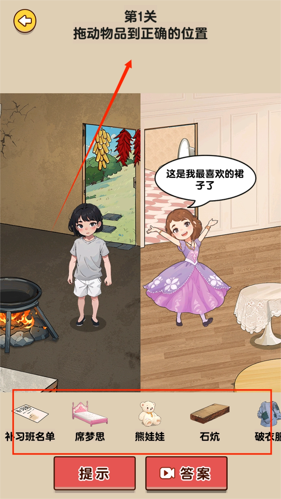 按照游戏任务要求,把下方的物品拖到正确位置就能顺利闯关啦。