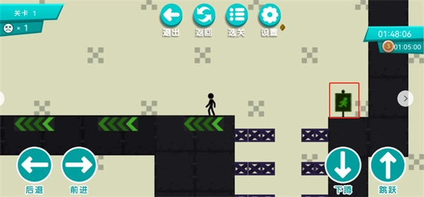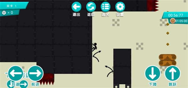 当玩家遇到图中这类障碍时,需要通过点击下蹲与前进的操作来穿过它。
