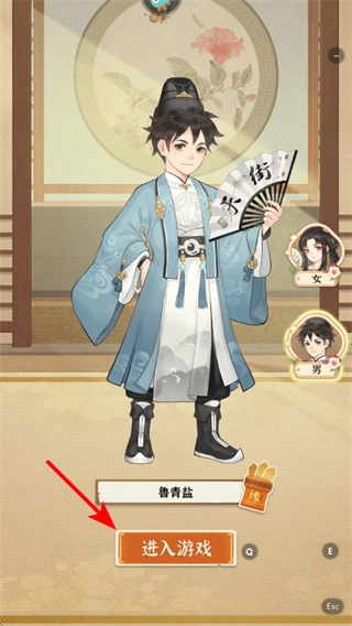 在角色选择界面点击进入游戏按钮,就能开启古风经营冒险之旅,这是开启游戏的关键步骤,精准点击后即可进入游戏世界。