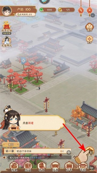 按照任务提示点击“去完成”按钮,就能开启像建造杂货铺这类经营任务,这是积累资源的方式,任务完成后还能获得建设奖励。