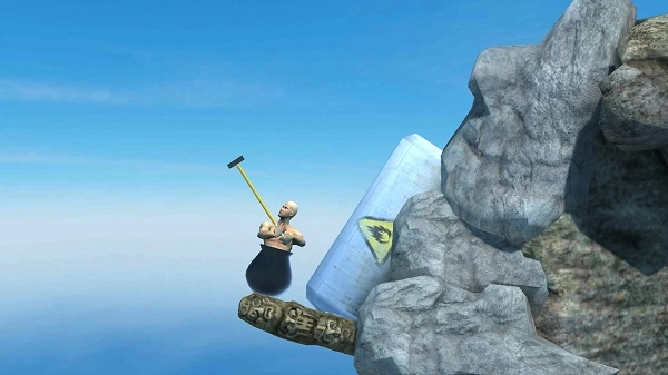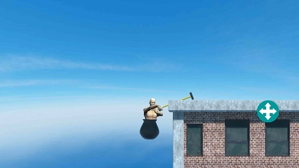 操作极简却极难掌控:无花里胡哨的按键,仅靠操纵锤子行动,左右晃动实现物理碰撞,向下捶地助力跳跃前进,引擎设计蹩脚,细微操作偏差就可能导致失足掉落前功尽弃。