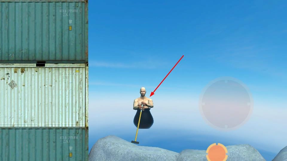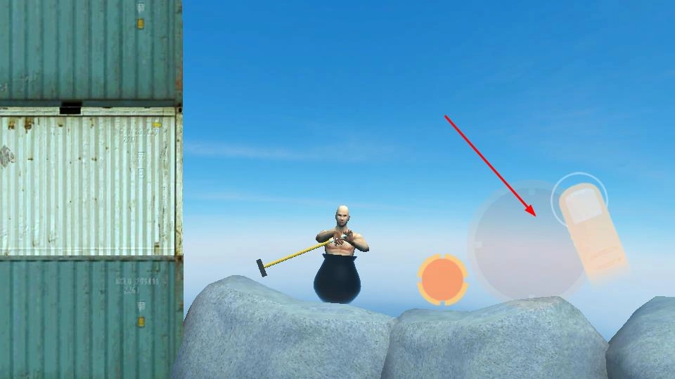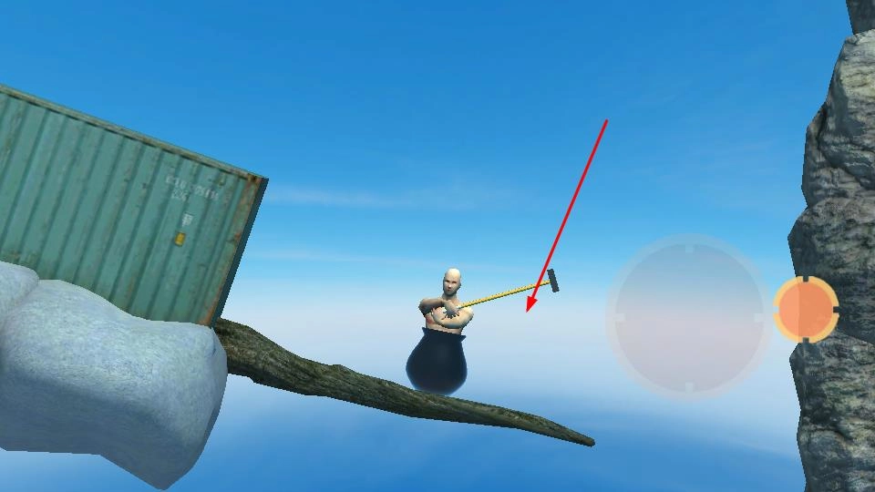 凭锤攀登跨越障碍:操控坐在缸中的人,借助触屏控制手中锤子,通过左右晃动产生物理碰撞,捶地实现跳跃和前进,以此跨越登山路上的各种障碍,同时向上攀爬。