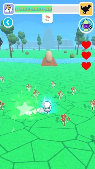 操控恐龙蛋在场景里快速移动,收集红色小花资源,触发特效来获取奖励。