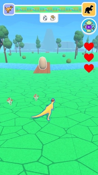点击“玩”按钮即可进入游戏,在初始阶段,你需要操控恐龙蛋在场景里移动,优先收集周边的小花等资源,以此积累恐龙蛋成长所必需的能量。