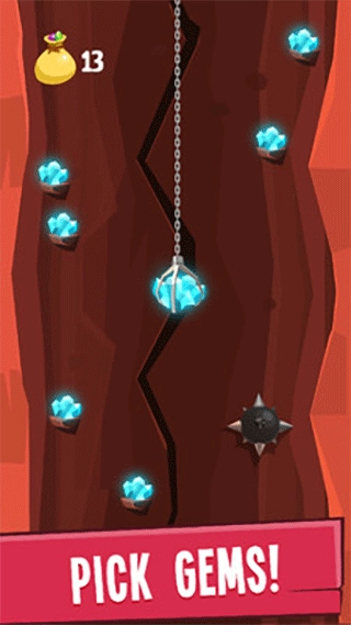 抓取到的宝石与水晶能够兑换成金币,而收集金币则可以用来提升钩爪的容量、锁链的长度等属性。